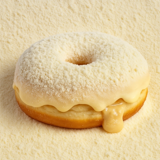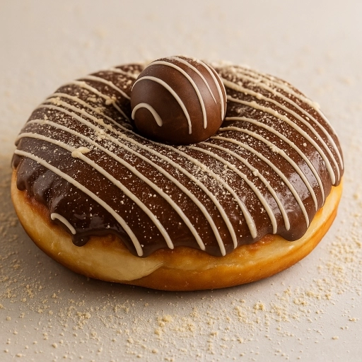 Donuts recheado de brigadeiro de leite ninho, avelã e coberto de leite ninho em pó.