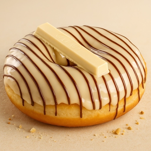 Uma cobertura única de chocolate branco, fios de chocolate ao leite e pra finalizar aquele famoso Kit Kat Branco.