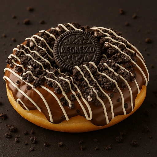 Uma cobertura única de chocolate branco, fios de chocolate ao leite e pra finalizar aquele famoso negresco.