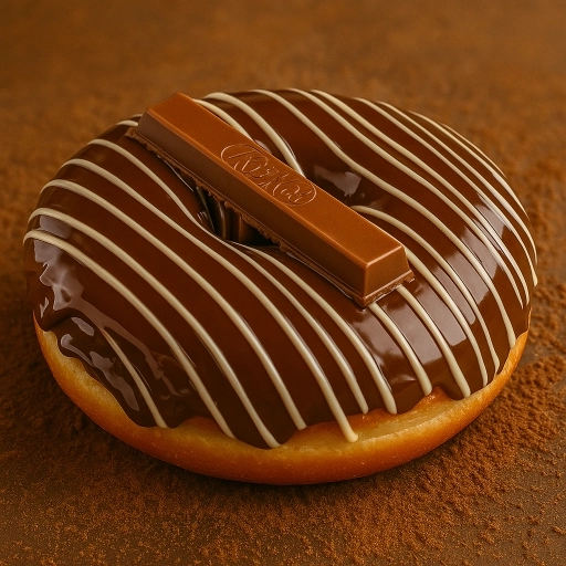 Uma cobertura única de chocolate ao leite, fios de chocolate branco e pra finalizar aquele famoso Kit Kat.